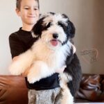 Banjo is the charming sire to our Bernedoodle puppies! He fathers puppies that are colorful and adorable with Tricolor and Blue Merle Tricolor coats. He is friendly and affable and has a happy tail! Banjo is 30 lbs.